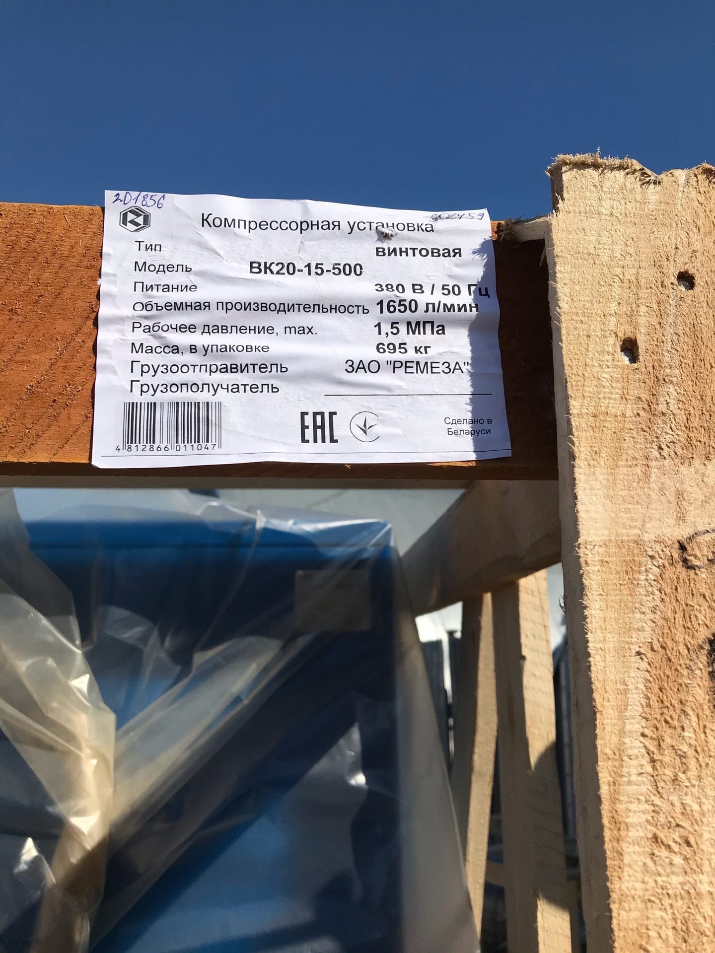 Отгрузка винтового компрессора Remeza ВК20-15-500 для линии выдува тары